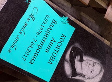 Затем мы наклеили на надгробье предварительно изготовленный трафарет, содержащий текст с основной информацией об усопшей.