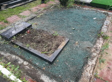 Сначала мы разобрали всё, что было на могиле: демонтировали памятник, сняли гранитный цоколь, разломали бетон.